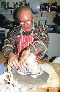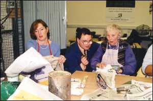 The daylong session comprised two parts, a discussion and a workshop. At the exhibition we discussed the mural created in the previous workshop, concentrating on the results of making sculpture by touch and tactile mark making. In particular we debated how our work in plastic clay had come through the firing process. We also considered the design qualities of tactile mark making as an independent art form. The theme of the workshop was making marks in objects that make it possible to comfortably hold that object.