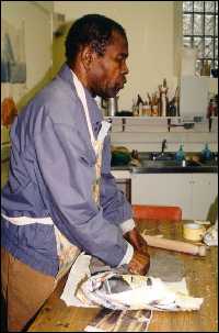 Art Through Touch is an organisation based in south London that develops and runs art projects with visually impaired and blind people. In November 1997 I led a workshop to create a tactile mural with 8 people from the group. This piece in terracotta clay was called a 'Language of Touch'. To coincide with its exhibition at the St George's Hospital Tooting I was invited to lead a follow up session in 1998.